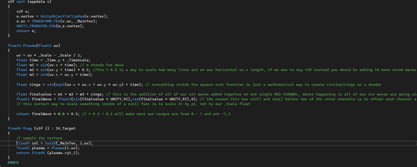 This is the output and the code for the plasma shader effect I created that I then also used to create these simple water ripples that use intersectcting sin and cos waves to move the texture UV's.